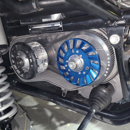In our quest to cool the belts in these cars down we have decided to release a new larger diameter billet clutch exhaust fan. This fan was designed to be paired with our clutch cooling package but will work with others as well. We still strongly believe in the mechanical fan theory without adding more electrical accessories to fail. This fan is made from 6061 Aluminum and made to live through those failed belts and the debris they create.